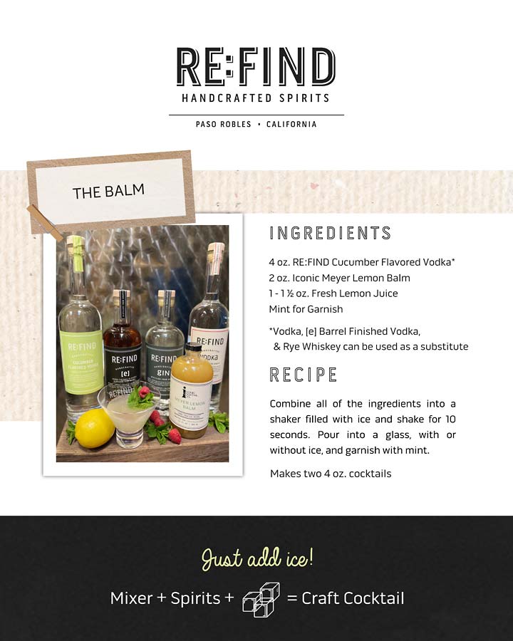 Re:Find Distillery uses our meticulously clean vodka as the base of our gin. We embrace our 25+ years experience as vintners which gave us the expertise to carefully layer in a proprietary blend of seven botanicals to craft our memorable gin. We achieve the flavor by first steeping and then vapor-passing the botanicals through the still giving us a clean, natural flavoring. The natural viscosity of the wine-grape base provides a textural weight and lingering finish. Our blend of juniper, lemon/orange peels, lavender, grains of paradise, coriander, and orris root is beautifully layered on the palate and has a delightfully floral aromatic note.